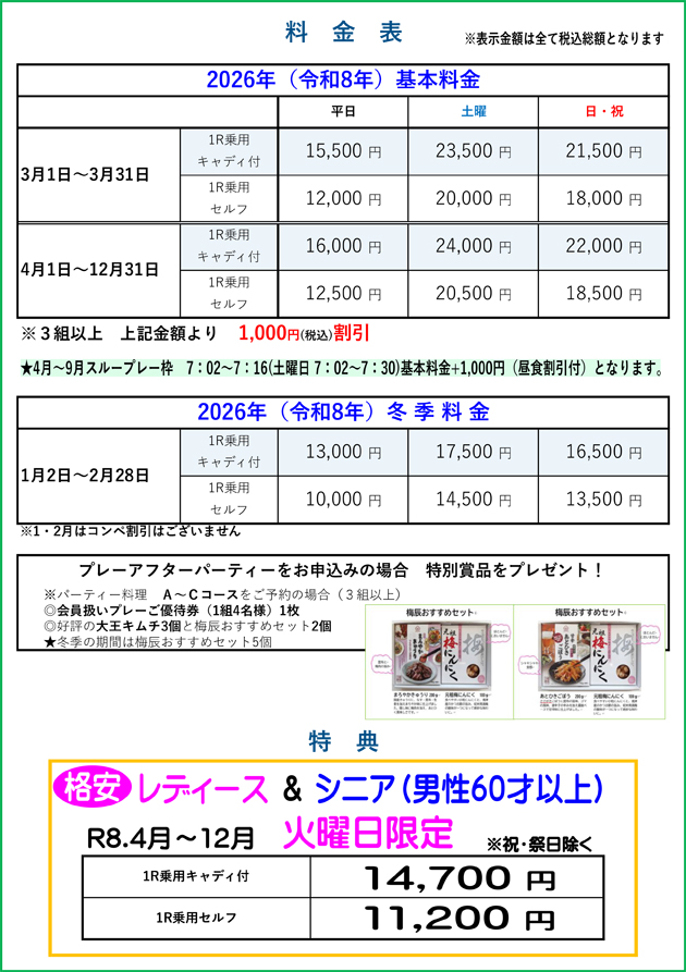 プレー料金、練習場のご案内について掲載しております。ご利用の前にこちらをご確認ください。