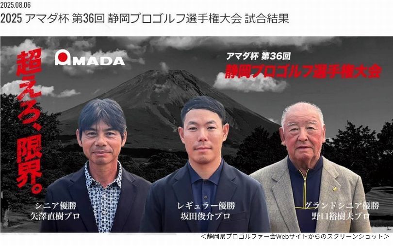 当クラブ所属の坂田俊介プロが、静岡県プロゴルファー会主催による2025年『アマダ杯第36回静岡プロゴルフ選手権大会』にて、見事優勝し賞金100万円を獲得しました。